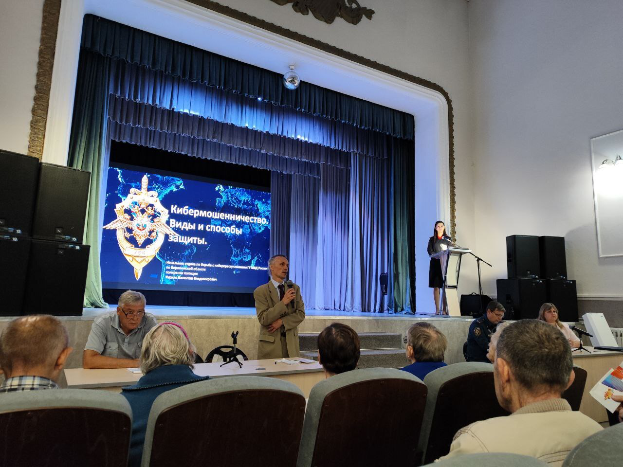 23 сентября 2025 г. группа наших активных подопечных приняла участие во встрече, организованной Воронежским региональным отделением Российского фонда ветеранов. Мероприятие прошло в районном центре культуры и досуга. Здесь были освещены важные темы, касающиеся каждого человека, а именно: кибермошенничество, финансовая безопасность, пожарная безопасность и действия в случае ЧС, медицинская безопасность.